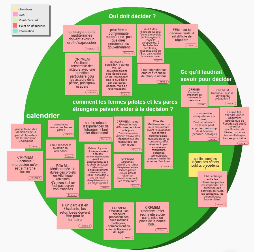 Cette réunion était organisée sous forme de « world café » : les participant.e.s ont été réparti.e.s aléatoirement et chacun.e a pu débattre dans deux groupes.