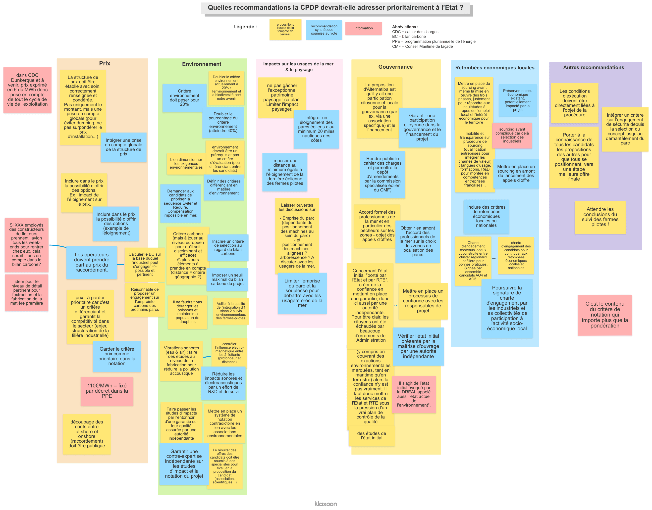 L’équipe du débat EOS proposait lors de cet atelier thématique d’échanger sur le cadre réglementaire et juridique des cahiers des charges de ce type d’appel d’offre, puis de travailler collectivement sur les recommandations à adresser pour la rédaction d’un éventuel cahier des charges du projets d’éoliennes flottantes en Méditerranée.